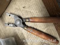 Kokillenzange mit Gießpfanne sowie Doppelgußformen für Kaliber: