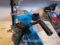 - Dillon RL 550C Ladepresse (nur für kleine Zündhütchen, Schieber, Magazinrohr und Füllrohr für große Zünder ist nicht dabei) inkl. Kaliberwechselsatz für 9mm und 38/357, Stand und ergonomischen Griff (550€)
