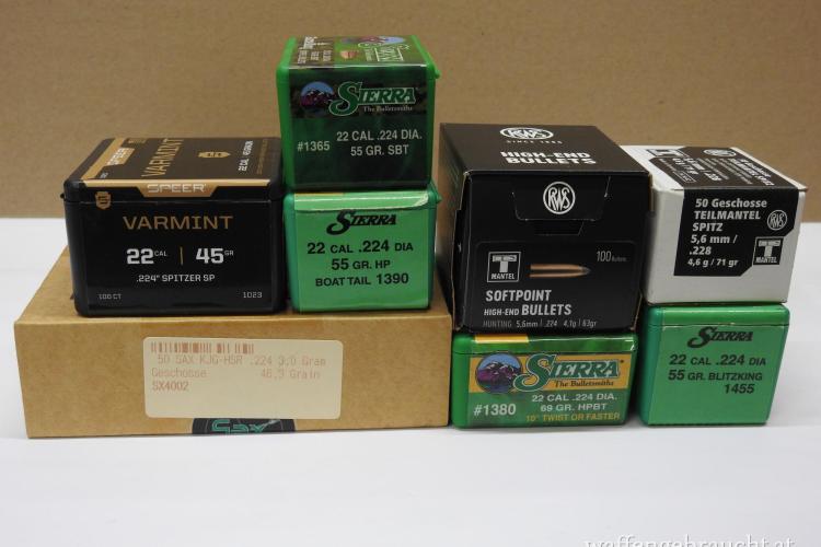 | Hersteller | Speer, Sierra, RWS, SAX, Nosler, Hornady, Barnes, Norma |