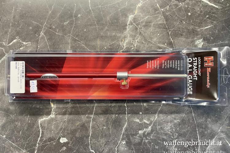 O.A.L Lehre von Hornady, zur Messung der Setztiefe bei Büchsen mit einem Zylinderverschluss und Waffen mit geradlinigem Zugang zum Patronenlager.