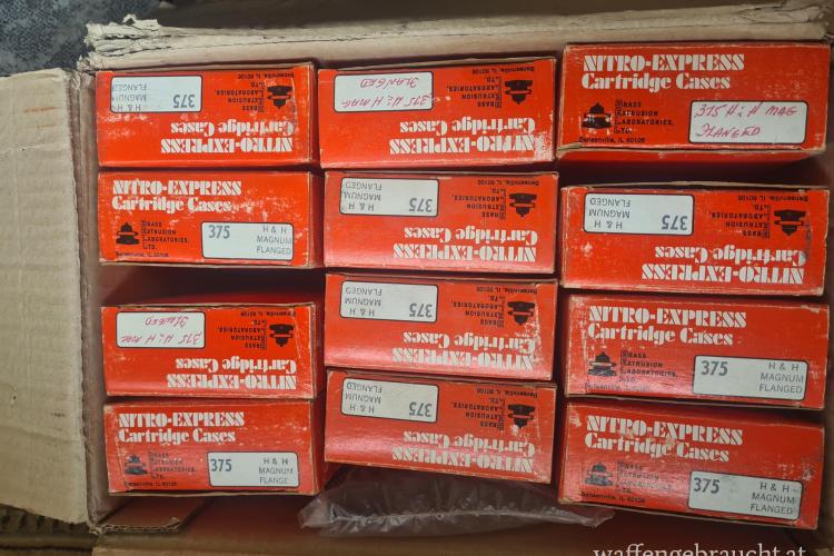 verkaufe NEUE 240 Stk originalverpackte (eingeschweisst) UNGESCHOSSEN Hülsen im Kaliber .375 Holland & Holland FLANGED Magnum Nitro Express zuzüglich Versandkosten, Verkauf nur der gesamten Menge 240 Stück, Keine Einzelabgabe