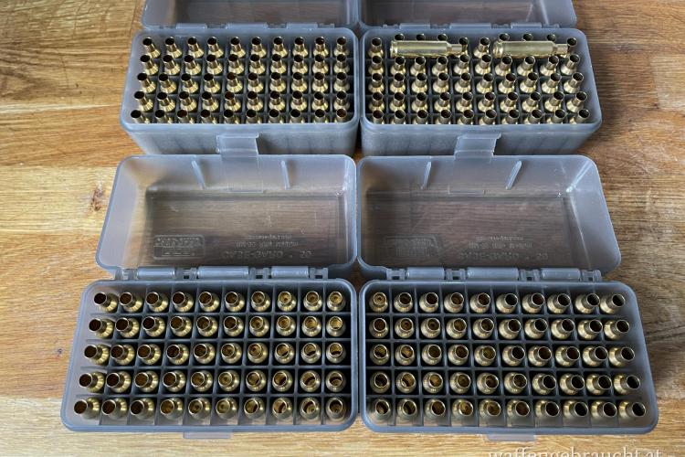 Alle Hülsen wurden mit einem Forster 3-weg Trimmer gleichmäßig getrimmt, sowie Innen und Außen entgratet. Weiters sind bereits CCI BR-4 Benchrest-Primer gesetzt.