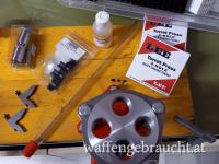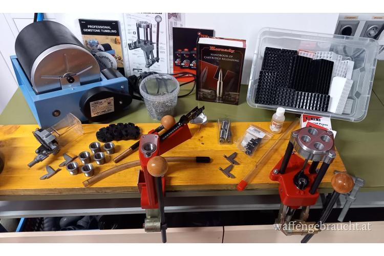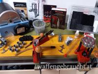 - Lee Challenger Einstationenpresse mit 2 ZH-Setzer und insgesamt 7 Schnellwechseleinsätze sowie ein zweiter, kürzerer Ladehebel für kleine FFW Kaliber