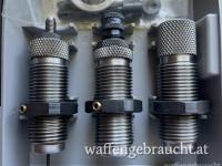 Die 3-teiligen RCBS Hartmetall-Kurzwaffenmatrizensätze bestehen aus einer Vollkalibriermatrize aus Hartmetall, das heißt, die Hülsen müssen nicht gefettet werden, sowie einer Aufweitematrize und der Geschosssetzmatrize.