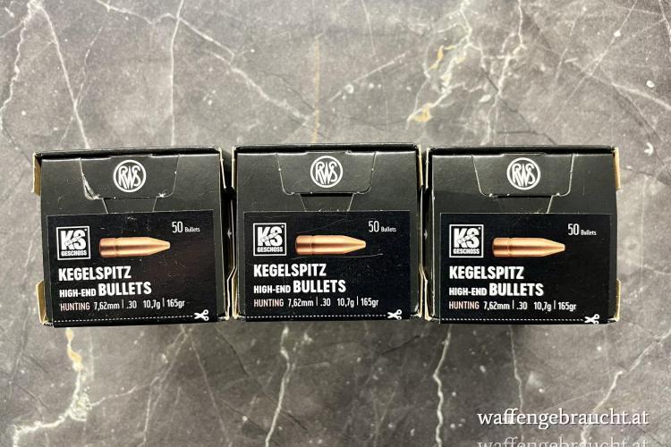RWS Kegelspitz Geschosse im Kaliber 7,62mm/.30dia mit 10,7g/165gr