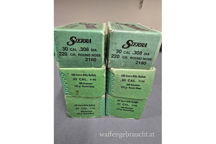 6 Packungen a 100 Stk Sierra Cal 30 Round Nose 220 gr - neu.