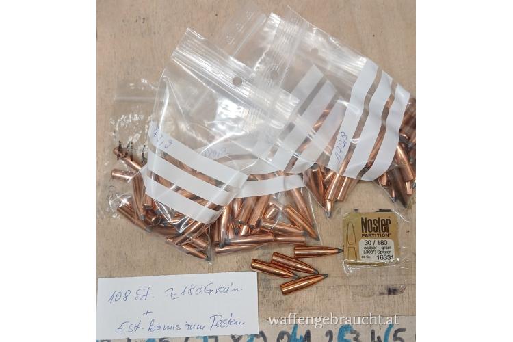 Verkaufe 108 St. Nosler Partition in 180 Grain für nur 130€ für die 30er Kaliber.