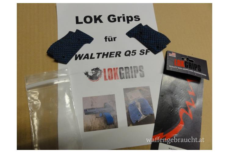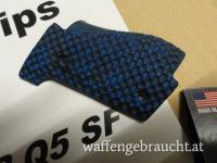 Biete 1 Stück Griffschalen von LOK Grips USA, sehr griffig und in der Farbe Blau-Schwarz, passend perfekt für Walther Q 5 Steel Frame ! Standard Bogies Size.