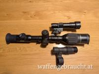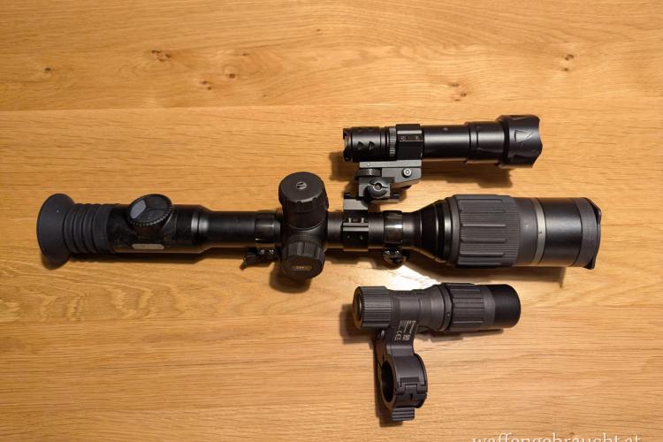 Pulsar Digex n455 ohne Montageringe, plus ein Unique Fire UF-2002 D 940 Aufheller inkl. Picantinni RAIL Mittelrohrmontage, Reservebatterie und Ladegerät, plus Pulsar Digex-X 850 IR Aufheller Illuminator inkl. Ladegerät und 4 Stück Battery Pack APS2 Batterien. Tasche ist dabei. Privatverkauf deshalb keine Garantie oder Gewährleistung