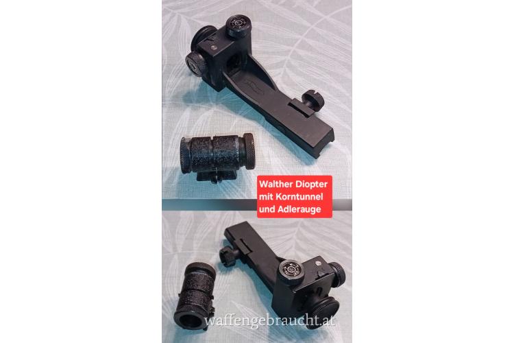 DIOPTER von Walther mit KORNTUNNEL und Adlerauge, das Teil ist voll funktionsfähig alles rastet sauber, versicherter Versand ist per Vorkasse möglich. Versand versichert 8,- Euro EU - Ausland 16,- Euro