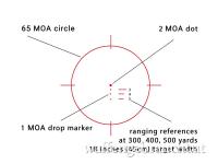 Klarer, scharfer Punkt, 1.5 MOA, auf 12 Helligkeitsstufen verstellbar. Geeignet für Langwaffen aller Art. Verwendbar mit Nachtsichtgeräten.