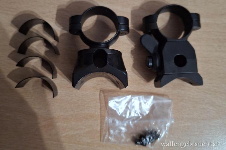 Die Montage ist neu und wurden nie montiert und hat einen Durchmesser für 1"(25,4mm) Tubusdurchmesser. Es sind alle Schrauben zur Montage dabei sowie Beilegeringe für die ZF Montage. Montagematerial ist Vollstahl und brüniert.