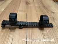 Auf der Picatinny-Schiene sind 30er Ringe montiert.