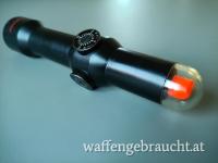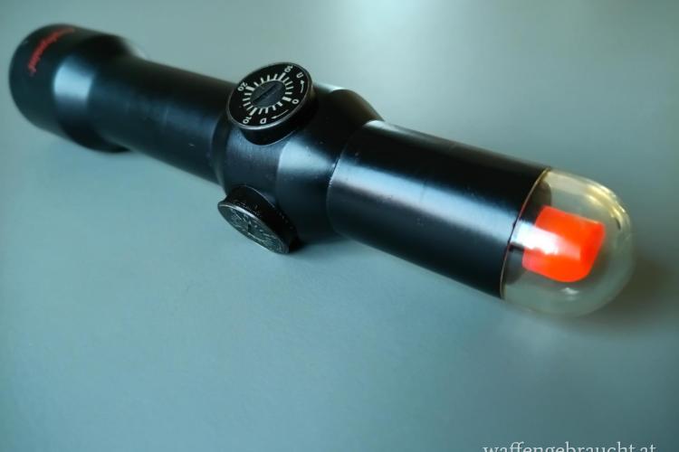 Angeboten wir ein "Ur-Rotpunkt" der Firma Singlepoint (Made in England) aus den 70er-Jahren, bekannt geworden durch den Einsatz im Gefangenenlager San-Toy während des Vietnamkrieges. Das Prinzip dieser Technik baut auf dem binokularen Sehen auf, vereinfacht gesagt werden die Sehfelder beider Augen überlagert, denn im Singlepoint sieht man nur einen roten Punkt auf schwarzem Hintergrund, während das 2. Auge das Ziel erfasst. Der Rotpunkt entsteht nur durch Lichteinfall, also ohne Batterie und funktioniert auch noch nach über 50 Jahren! Ein wunderbares Stück Zeitgeschichte".