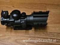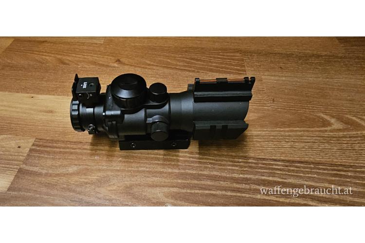 Zielhilfe mit Leucht Fadenkreuz Wahlweise Rot oder Grün plus Einstellbare Kimme Korn Visierung, Keine Firma oder Typenbezeichnung Montage auf Picantinnyschiene