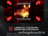 Großes, vollfarbiges High-Definition-OLED-Display. Mit einem großen 0,41 Zoll OLED-Display mit einer Auflösung von 1440 x 1080 liefert der BlazeHunter die doppelte Pixeldichte anderer Zuschauer, um sicherzustellen, dass jedes Detail scharf und kristallklar ist und Ihnen in jeder Situation den Vorteil bietet.