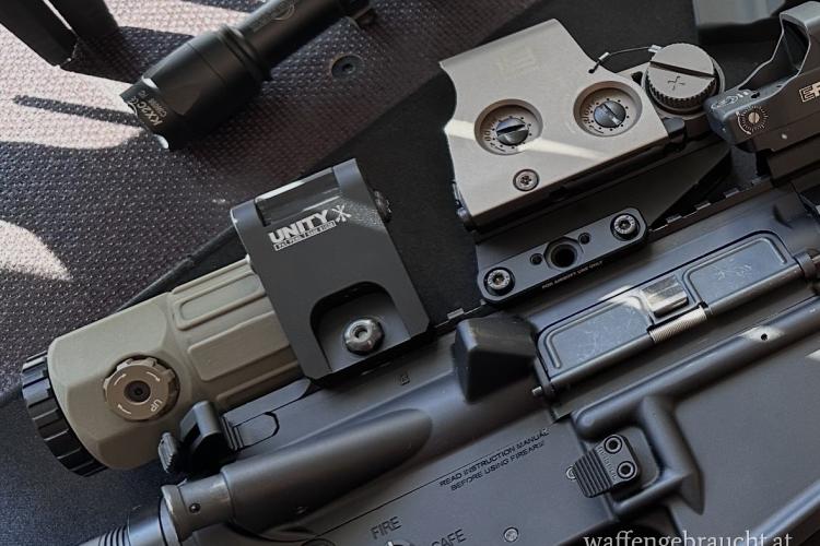 Original EOTech XPS2 mit PTS licenced Unity Riser (high) + EOTech G45 (Replika) mit Unity Fast Mount (Replika). 2.26" Optical Centerline.