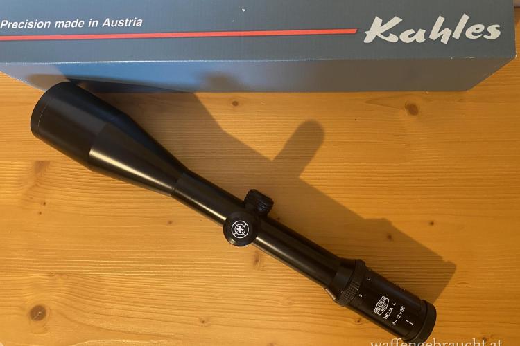 Kahles Helia 3-12x56 LS, mit Fadenkreuz und Leuchtabsehen. Linsen sind klar und absolut kratzfrei. 56er Objektivdurchmesser und 30mm Mittelrohr. Originalkarton und Garantiekarte vorhanden.
