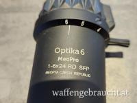 Meopta Optika6 1-6x24, Gebrauchsspuren von der Montage sichtbar sonst keine Beschädigungen. Linsen kratzfrei und klar.