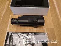 "Das STEINER ICS 6x40 wurde mit dem Ziel entwickelt, Gewehrschützen eine Optik modernster Technologie zur Verfügung zu stellen, die ihre Kampffähigkeit durch schnelle und effektive Zielbekämpfung steigert. Dank der intelligenten Technik sind damit zuverlässige Ersttreffer auch auf Entfernungen von 300 bis 800 m, abhängig von der verwendeten Waffe und Munition, möglich. Das STEINER ICS 6x40 bietet in einer kompakten Einheit folgende Funktionen: ein Zielfernrohr mit 6-facher Vergrößerung, einen Laser-Entfernungsmesser der Laser Klasse 1 sowie einen damit gekoppelten ballistischen Rechner mit Zielpunkt-Kompensation und 4-fach verstellbarer Anzeigen-Beleuchtung. Die oben integrierte Picatinny-Schiene für den Anbau von Zielgeräten für kurze Kampfdistanzen (z. B. Red-Dot) sowie das Iron-Sight als Backup erweitern die Fähigkeiten des STEINER ICS 6×40. In Abhängigkeit zur Zielentfernung blendet das STEINER ICS 6×40 im Absehen immer den korrekten Anhaltepunkt ein. Hierfür stehen 38 unterschiedliche Speicherpositionen zur Verfügung. Fest abgespeichert sind 13 Laborierungen Kaliber .223 (5,56x45), 13 Laborierungen Kailber .308 ( 7,62x51), 5 Laborierungen .300 WM (7,62x67) und 1 Laborierung .300 Blackout (7,62x35AAC). Die notwendige Kompensation wird vom integrierten Ballistik-Programm aus der exakten Messung der Zielentfernung durch den Laser- Entfernungsmesser errechnet.Das ICS 6×40 ist wasserdicht, stoßfest, beschlagfrei und mit mehrfach vergüteten Linsen für helle und scharfe Darstellung ausgestattet. Die Strichplatte kann, je nach Lichtbedingungen, in unterschiedlichen Funktionsbereichen und vier Helligkeitsstufen (rot beleuchtet) genutzt werden."