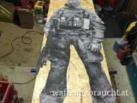 Ein KSK Einsatzmann und ein österreichischer Gebirgsjäger aus (auf) Pressspanblatte. Geeignet als Geschäftsdeko oder zB auf der Range als "Darsteller". Lebensgröße.