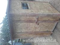Hochstand Neu und ungebraucht ohne Untergestell, ca. 125cm x 125cm x 180cm aus 18mm OSB Platten (Imprägniert, Wasserfest), Wind und Wasserdicht mit 3 Fenster aus 4-5 mm Glas (es sind auch 4 Fenster möglich) und 1 Tür inkl. Sitzbrett und Schussauflagen. Hochstände können Farblich oder einzelne Details vom Foto abweichen.