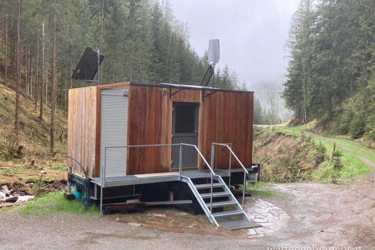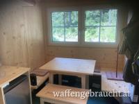 Auf Wunsch baue ich Jagdhütten aus Kreuzlagen - Holzplatten Stärke von 60 - 120mm außen zusätzlich mit Lärche verkleidet.