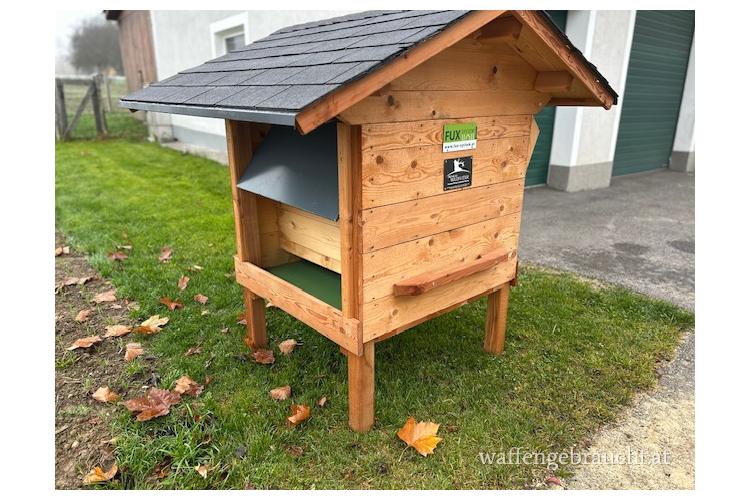 Big-Rehfütterung! War nur Ausstellungstück! Großes Fassungsvermögen, ca. 0,4 m2! Große Entnahmeöffnungen! Für Rohfaserreiches Rehfutter geeignet, z.B. Premium-Wildfuttermüsli!