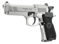Mit dem hohen Anspruch ihrem Vorbild gerecht zu werden, liegt der Fokus dieser CO₂-betriebenen Airgun klar auf einem präzisen und zuverlässigen System. Die Beretta MOD. 92 FS setzt daher auf einen zweigeteilten Schlitten mit einem 8-schüssigen Trommelmagazin, das direkt am Lauf eingesetzt wird. So wird garantiert, dass das Diabolo im Kaliber 4,5 mm sauber zugeführt wird. Die treibende 12 g CO₂-Kapsel ist leicht erreichbar im Griff der Vollmetall-Konstruktion untergebracht. Mit gut 60 Schuss pro Kapsel und einer Energie von bis zu vier Joule bietet sie ein ausdauerndes und kraftvolles Schießerlebnis. Die entsprechende Präzision liefern der gezogene Lauf und die einstellbare Visierung. Sowohl Single als auch Double Action-fähig und originalgetreu über die Schwenksicherung gesichert, lässt die Beretta MOD. 92 FS keine Wünsche offen.