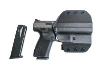 Das Modell TP9 SF Elite ist ein mittelgroßes Modell der TP-Serie mit einer Magazinkapazität von 15 Schuss. Das Modell trägt den Titel „Elite“ aufgrund seines beidhändigen Verschlussstopps, des brandneuen Abzugssicherheitsmechanismus, der Warren-Glasfaservisierung und des geschlossenen Schlagabdeckungsmechanismus sowie seiner verkürzten Griffgröße. Das im Vergleich zur vorherigen TP-Serie modifizierte Rahmendesign sorgt für ein einwandfreies Schießkomforterlebnis. Neben dem bequemen Tragegefühl dank seiner Größe wird die Abzugsreichweite durch ein verbessertes Design der Abzugssicherheit verkürzt, und daher wird der Schießkomfort von Schützeninnen entsprechend berücksichtigt. Das standardmäßige Glasfaserkorn und die geschwärzte Kimme des Scott Warren-Designs ermöglichen es Schützen, die Ziele schnellstmöglich von einem zum anderen zu wechseln. Genau wie bei allen Waffen der TP-Serie; Der Koffer wird standardmäßig mit einem Holster, einer größeren Rücklaufsperre und einem Speedloader sowie 2 Magazinen der Marke Mec-Gar geliefert.