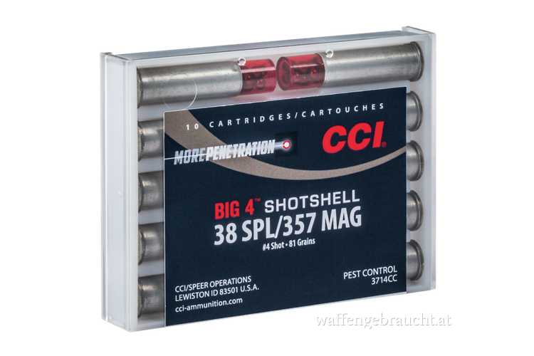 - Die CCI Schrotmunition .357 Mag. 5,40g Shotshell 3,30mm Pest Control ist speziell für die Schädlingsbekämpfung konzipiert.