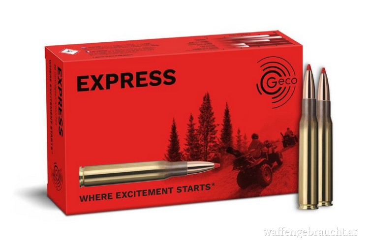 Das GECO Express steht für eine gestreckte Flugbahn, hohe Geschossgeschwindigkeit und extreme Augenblickswirkung - vereint in einer neuartigen GECO Entwicklung. Die auffällig stromlinienförmige Geschossform wird von der GECO Express Tip abgeschlossen. Eine Geschossspitze, welche weite, präzise Schüsse ohne Haltepunktkorrektur ermöglicht. Die hohe Geschossgeschwindigkeit wird bis ins Ziel gehalten und auf Grund der auf Distanz konzipierten Mantelkonstruktion in Energie umgesetzt. Energie, welche die Stücke an den Boden bringt.