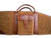 hellbraun teilweise Rauh- teilweise Glattleder zweizipp Reißverschluss. Riemen zum Umhängen seitliche Außentasche. Sehr hochwertige Ausführung. Top Preis Leistung. Geeignet für Waffen mit und ohne Zielfernrohr.