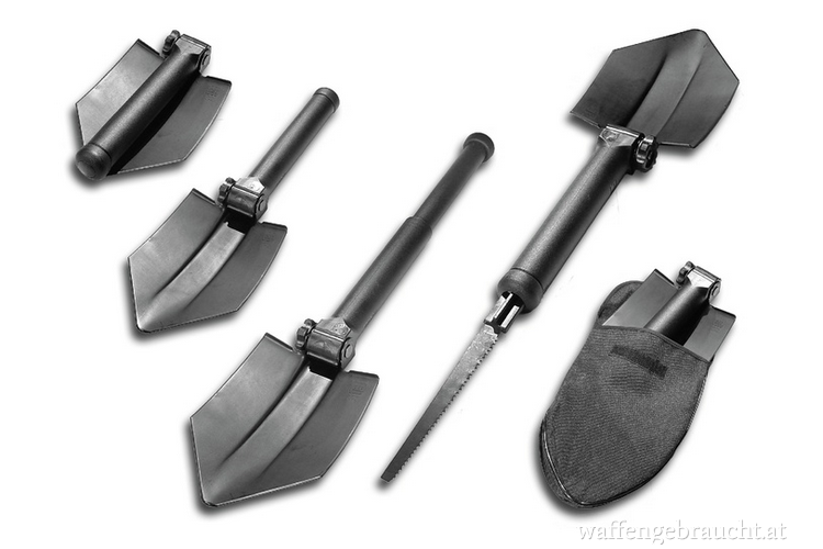 Drei Werkzeuge in einem Produkt: Spaten, Schaufel und Säge. Ein funktionales Werkzeug für jeden Outdoor-Profi. Das oberflächenbehandelte Spatenblatt kommt ohne Schweißnähte oder Nieten aus und lässt sich in drei verschiedenen Positionen arretieren und in eine Schaufel oder einen Spaten verwandeln. Ein gehärtetes Sägeblatt mit Schraubendreherspitze ist im Teleskopgriff aus Polymer gelagert und kann fest mit dem Griff verbunden werden. Zusammengeklappt hat es extrem kleine Außenmaße und lässt sich problemlos in einer Tasche oder jedem Feldrucksack oder Fahrzeugkoffer verstauen.
