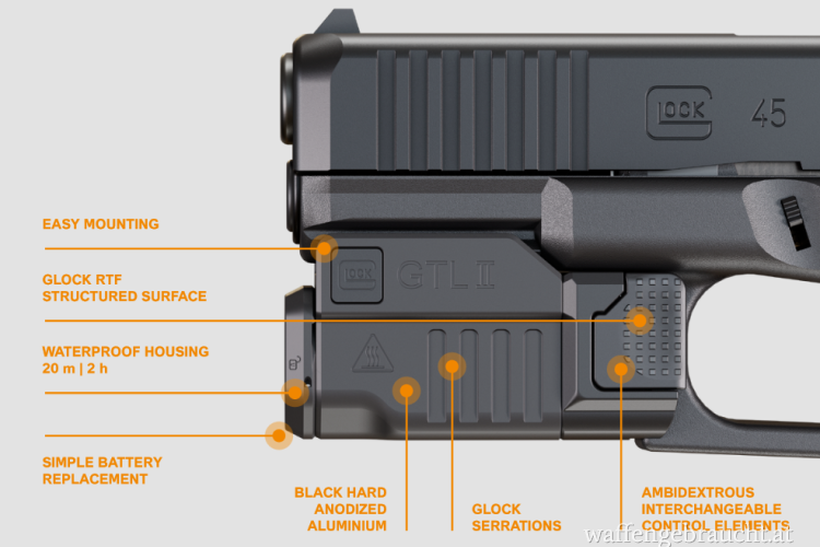 GLOCK stellt das GTL II vor, das speziell für GLOCK Pistolen mit Montageschiene* entwickelt wurde.