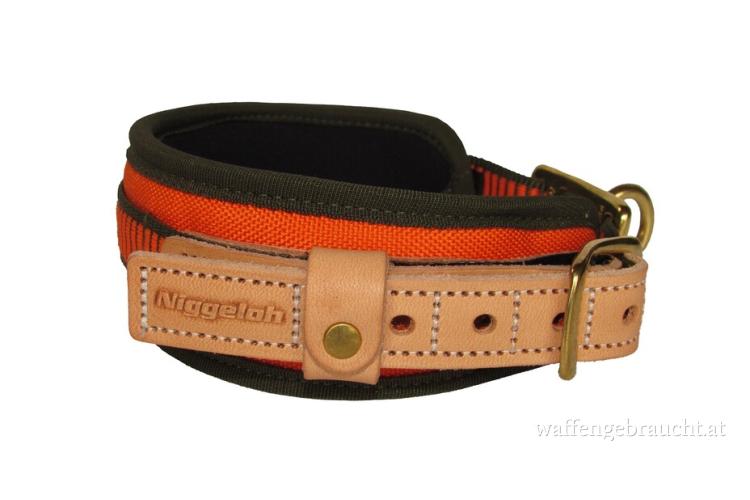 Schweisshalsung mit einer formstabilen Innenneinlage aus Aluminium. Diese Einlage verhindert, dass sich die Halsung unter Zugbelastung zusammenzieht und