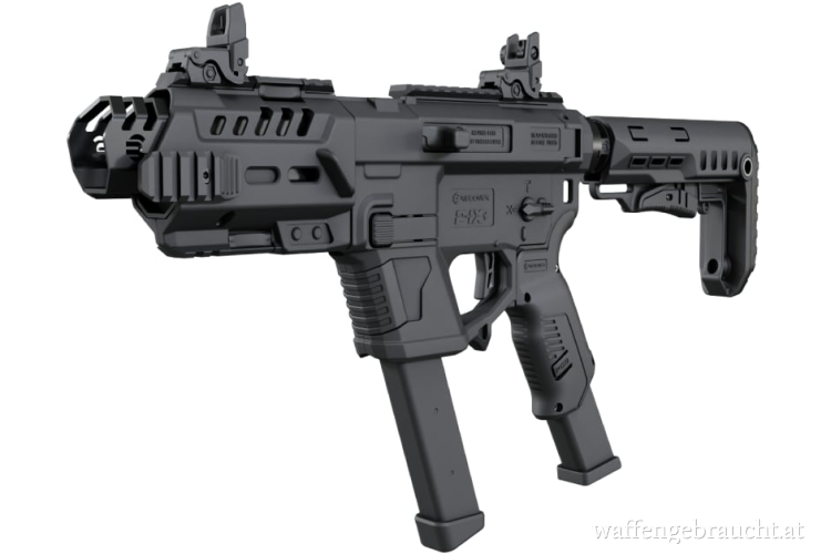 Eigenschaften : AR-Ergonomie | Schnelle und einfache Pistoleninstallation (siehe Video unten) | Verwendet standardmäßiges AR-Zubehör | Kompatibel mit mehreren Glock-Modellen (Passdiagramm unten) | Sicherheitswähler | Einstellbarer Abzug | Mehrere Picatinny-Schienen | Optional klappbarer Hinterschaft | Hergestellt aus glasfaserverstärktem Polymer