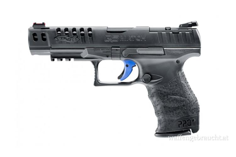 Die neue 5 Zoll Großkaliber-Match/Sportpistole Walther Q5 Match Champion spielt eine Liga höher, als die Standard Q5 Match. Die Q5 Match Champion hat dieselben Eckdaten wie die Q5 Match, besitzt aber einen "trockenen" Abzug durch eine einstellbare Klinkenüberschneidung und eine extra schwere Schließfederstange aus Wolfram und hat zusätzlich 1Magazin mehr im Lieferumfang! Im Lieferumfang sind drei auswechselbaren Adapterplatten für Red-Dot-Visierungen welche passend sind für DELTA, Trijicon, Leupold, Docter/Meopta usw.. Auf der neutralen Adapterplatte wurde ein höhen- und seitenverstellbares LPA-Klickvisier montiert. Das passende LPA-Korn dazu hat einen Fiberoptik-Einsatz. Um für den Wettkampfeinsatz gerüstet zu sein, werden gleich drei 17-Schuss-Magazine mitgeliefert. Technische Daten: * Kaliber: 9mm Luger * Spezialabzug: Quick Defense, vorgespannt, Trockener" Abzug durch einstellbare -- Klinkenüberschneidung , Abzugstange mit blauer AFC-Beschichtung (Sorgen für eine bessere Abzugcharakteristik) * Extra schwere Schließfederstange aus Wolfram * Visierung: Metallkimme mit Klickeinstellung * Visierlänge: 181mm * Lauflänge: 127mm / 5 Zoll * Gesamtlänge: 206mm * Gewicht: 775g *Bestnote im Test: 25m aufgelegt GECO Hexagon 124 grs LK 35 mm Lieferumfang: 1x Walther PPQ Q5 Match Champion 1x Waffenkoffer 3x 17-Schuss Magazine 3x Adapterplatten für Visierung 1x Schlüssel zum Wechseln der Adapterplatten 3x Griffrücken zum Auswechseln