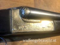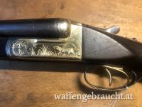 Ältere, sehr gut erhaltene, sehr günstige spanische Querflinte Kal. 16/70 spiegelblanke Läufe, vergoldet