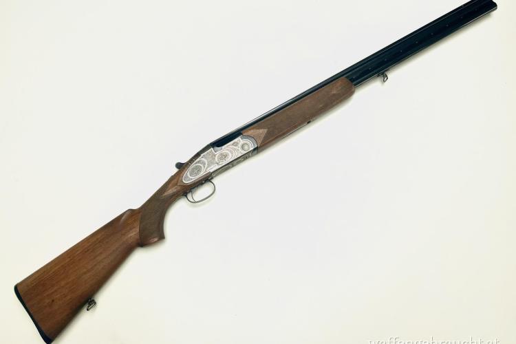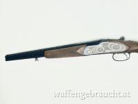Angeboten wird eine Bockflinte des Herstellers Angelo Zoli im Kaliber 12/70 und ist mit Seitenplatten versehen. Die Läufe sind ventiliert. Der allgemeine Zustand ist gebraucht. Der Schaft weist teilweise scharfe Einkerbungen auf.