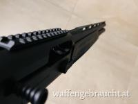 Verbaut sind eine Toni Systems Magazinverlängerung, eine Picatinnyschiene zur Montage von Zubehör (z.B. Optik/Rotpunktvisier) sowie Bolt Shroud Kit.