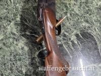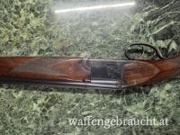 Lauflänge: 725 mm, Doppelabzug, automatische Kolbenhalssicherung, Auszieher, doppelte Laufhakenverriegelung, brüniert, einfachste jagdliche Randstich- und Arabeskengravur, Nussholzschaft, guter Zustand, Holz bei Abzug ausgebrochen, Läufe innen spiegelblank