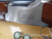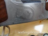 Kal. 12/70. Lauflänge 71 cm, Gesamtlänge 111 cm. Abzugsmaß 35 cm. Viertel- und Halbchoke. Ventilierte Laufschiene, ventilierte Visierschiene.