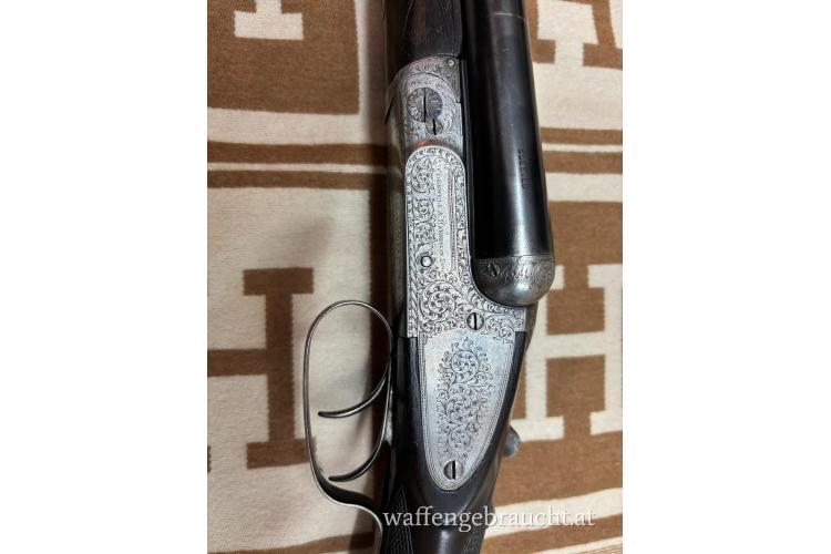 Doppelflinte Cogswell & Harrison 12/65!! LL 66 cm , Chokes halb , 3/4 , Ejektoren , Doppelabzug , Lange Seitenplatten mit Arabesken graviert, Holzschaft 38cm , Elglisch geschäftet, Nr 2 aus einem Pärchen ! Gültiger Britischer Beschuss , Vordeschsft li ganz leicht beschädigt!