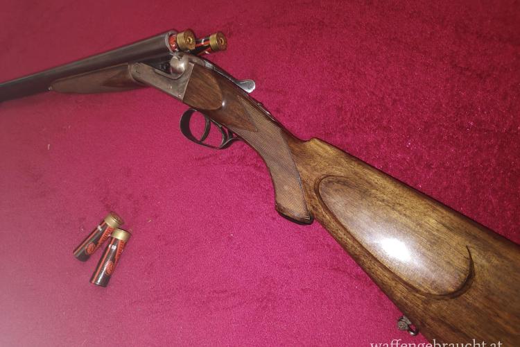 Die klassische Side-by-Side wurde soeben in Ferlach mit großem Aufwand vom Büchsenmachermeister abgedichtet, der Schanierbolzen erneuert sowie das Lager auf Normmaß gebracht. Zusätzlich wurde der Schaft wie auf den Fotos ersichtlich überarbeitet. - daher für Liebhaber oder Sammler von Gewehren aus Belgien bestens für die nächsten Jahrzehnte zur Jagd geeignet.