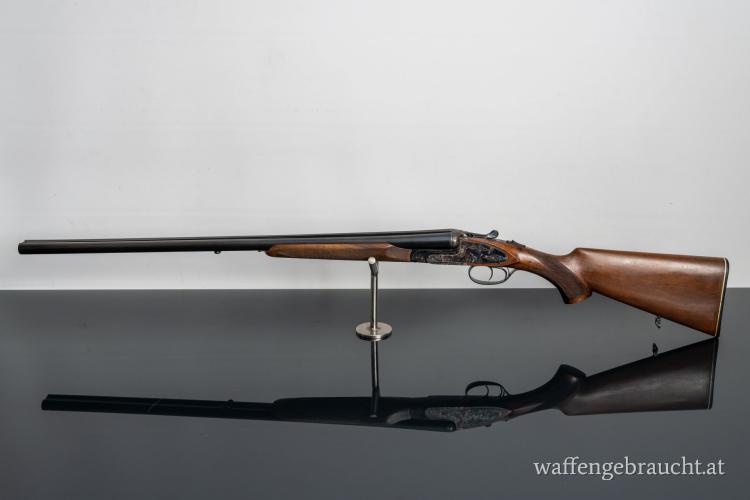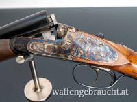 Die Seitenschlösser und das Baskül der Flinte sind buntgehärtet und mit kunstvollen Arabeskengravuren verziert, die der Flinte eine edle und individuelle Optik verleihen. Ein weiterer technischer Vorteil ist die Indikatorwelle, die den Zustand des Schlosses anzeigt, sodass der Schütze stets über den Spannzustand der Waffe informiert ist – ein praktisches Detail für sichere Handhabung.