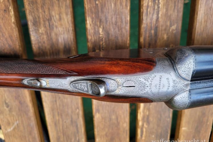 Ich verkaufe meine C.S. Rosson Querflinte im Kaliber 12/70. Diese englische Boxlock ist ein seltenes Stück. C.S. Rosson war ein Hersteller hochwertiger Flinten aus Norwich in England. Statt des klassischen Openers nutzt dieses Modell einen "Easy Opener", patentiert von Smith. Dieser wird nach oben geschoben, um die Laufverriegelung zu lösen. Das System wurde 1931 patentiert, diese Flinte ist laut Beschusszeichen 1936 beschossen worden. In Deutschland 1961