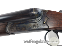 Die gebrauchte MERKEL Doppelflinte Modell 8 ist ein echtes Meisterstück traditioneller Büchsenmacherkunst. Mit Kastenschlössern nach dem bewährten System „Anson & Deeley“, automatischer Kolbenhalssicherung, Ausziehern sowie der doppelten Laufhakenverriegelung mit Schienenverlängerung und Greener-Verschluss garantiert sie zuverlässige Funktion und Langlebigkeit. Die 11 mm breite Visierschiene mit Perlkorn unterstützt eine schnelle Zielerfassung, während die seitlichen Signalstifte das Gespanntsein der Schlösser optisch anzeigen. Optisch überzeugt sie mit einer buntgehärteten Basküle, fein gravierter Züngelplatte und Vorderschaft. Der ergonomische Schaft aus ausgesuchtem Nussholz ist mit Pistolengriff, Fischhaut, deutscher Backe und schwarzer Kunststoff-Schaftkappe versehen. Riemenbügel sind ebenfalls montiert – ideal für den jagdlichen Einsatz. Ein Sammlerstück mit vollem Gebrauchswert zum attraktiven Preis.
