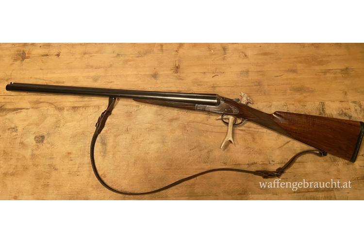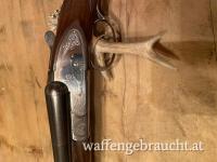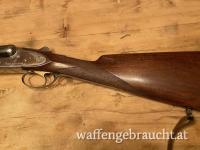 Doppelflinte mit Einabzug vergoldet, feine Arabesken, Seitenplatten, englische Schäftung, Leder Gewehrriemen,
