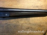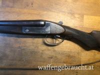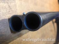 Sehr günstige, ältere, noch gut erhaltene, französische Querflinte im Kaliber 16/65, Verney, technisch in Ordnung, Läufe größtenteils spiegelblank, einige kleine Flecken im hinteren Bereich, Auszieher, Schiebesicherung auf dem Kolbenhals, Doppelabzug, Kunststoff Schaftabschluss, -Schaftlänge ca. 34 cm, Lauflänge 68 cm, Gesamtlänge 108 cm - auch für die Jagd als Schlechtwetterwaffe sehr gut geeignet